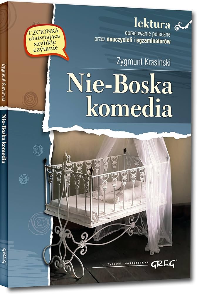 Wydanie Nie-Boskiej komedii kompletne bez skrótów i cięć w treści. W tym wydaniu znajdziesz odpowiedzi na pytania z podręcznika – „pewniak na teście”, czyli wskazanie zagadnień, które zwykle pojawiają się w pytaniach z danej lektury we wszelkich testach sprawdzających wiedzę, a także w podręcznikach i na klasówkach. Zawiera bardzo szczegółowe streszczenie oraz drugie skrócone, ułatwiające szybkie przygotowanie się przed lekcją. Opracowanie zawiera plan wydarzeń, wnikliwie wyjaśnioną problematykę oraz szerokie charakterystyki bohaterów. Arystokracja kontra rewolucjoniści, stary świat kontra nowy, który jednak wciąż pozostaje w marzeniach przyszłych panów świata, to podstawowy problem dramatu artysty, który krytycznie podchodził do przewrotów wszelkiego rodzaju. Rewolucjoniści pragną zburzenia starego porządku i budowania na gruzach. Henryk już wie, że to niemożliwe, bo istnieją wartości, których unicestwienie zniszczy zarazem. Jakby na potwierdzenie tych poglądów na scenę świata zalanego przez rewolucję wkracza Chrystus Mściciel...[bonito.pl].