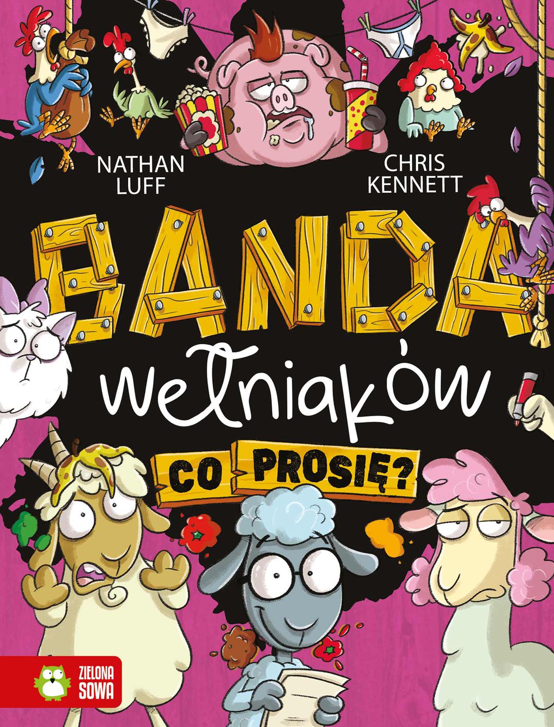 Baranek Beernard, Lama Szama, Kózka Wiluś – osobno potulni, łagodni i niepozorni. Mają już serdecznie dość bycia popychadłami na własnym podwórku. Postanawiają wziąć sprawy we własne kopytka i pokazać, że nie są tacy mięciusi, na jakich wyglądają. Czas stworzyć prawdziwą bandę – Bandę Wełniaków! Beernard i jego przyjaciele zdołali uciec przed panią Lisicą, ale teraz mają nowy problem: Kevin Bakon ma dla nich robotę. Chce, żeby pomogli mu zaimponować nowej świni na farmie – Barbie Q. Czy romantyczna kolacja przekona ją do nowego adoratora? A może zaimponuje jej musical Mo-hair? Pełna humoru seria o przygodach trójki niecodziennych przyjaciół, którzy udowadniają, że przy odrobinie sprytu nawet pozornie słabszy może zyskać przewagę. Łącząc swoje umiejętności, odwagę i pomysły, opracowują plan, a kiedy ten nie wypala, mają w zanadrzu kolejny i kolejny… Jedno jest pewne – czytając „Bandę Wełniaków” nie będziecie mogli przestać się śmiać! [Baranek Beernard, Lama Szama, Kózka Wiluś – osobno potulni, łagodni i niepozorni. Mają już serdecznie dość bycia popychadłami na własnym podwórku. Postanawiają wziąć sprawy we własne kopytka i pokazać, że nie są tacy mięciusi, na jakich wyglądają. Czas stworzyć prawdziwą bandę – Bandę Wełniaków! Beernard i jego przyjaciele zdołali uciec przed panią Lisicą, ale teraz mają nowy problem: Kevin Bakon ma dla nich robotę. Chce, żeby pomogli mu zaimponować nowej świni na farmie – Barbie Q. Czy romantyczna kolacja przekona ją do nowego adoratora? A może zaimponuje jej musical Mo-hair? Pełna humoru seria o przygodach trójki niecodziennych przyjaciół, którzy udowadniają, że przy odrobinie sprytu nawet pozornie słabszy może zyskać przewagę. Łącząc swoje umiejętności, odwagę i pomysły, opracowują plan, a kiedy ten nie wypala, mają w zanadrzu kolejny i kolejny… Jedno jest pewne – czytając „Bandę Wełniaków” nie będziecie mogli przestać się śmiać! [www.zielonasowa.pl/banda-welniakow-co-prosie-30745.html].