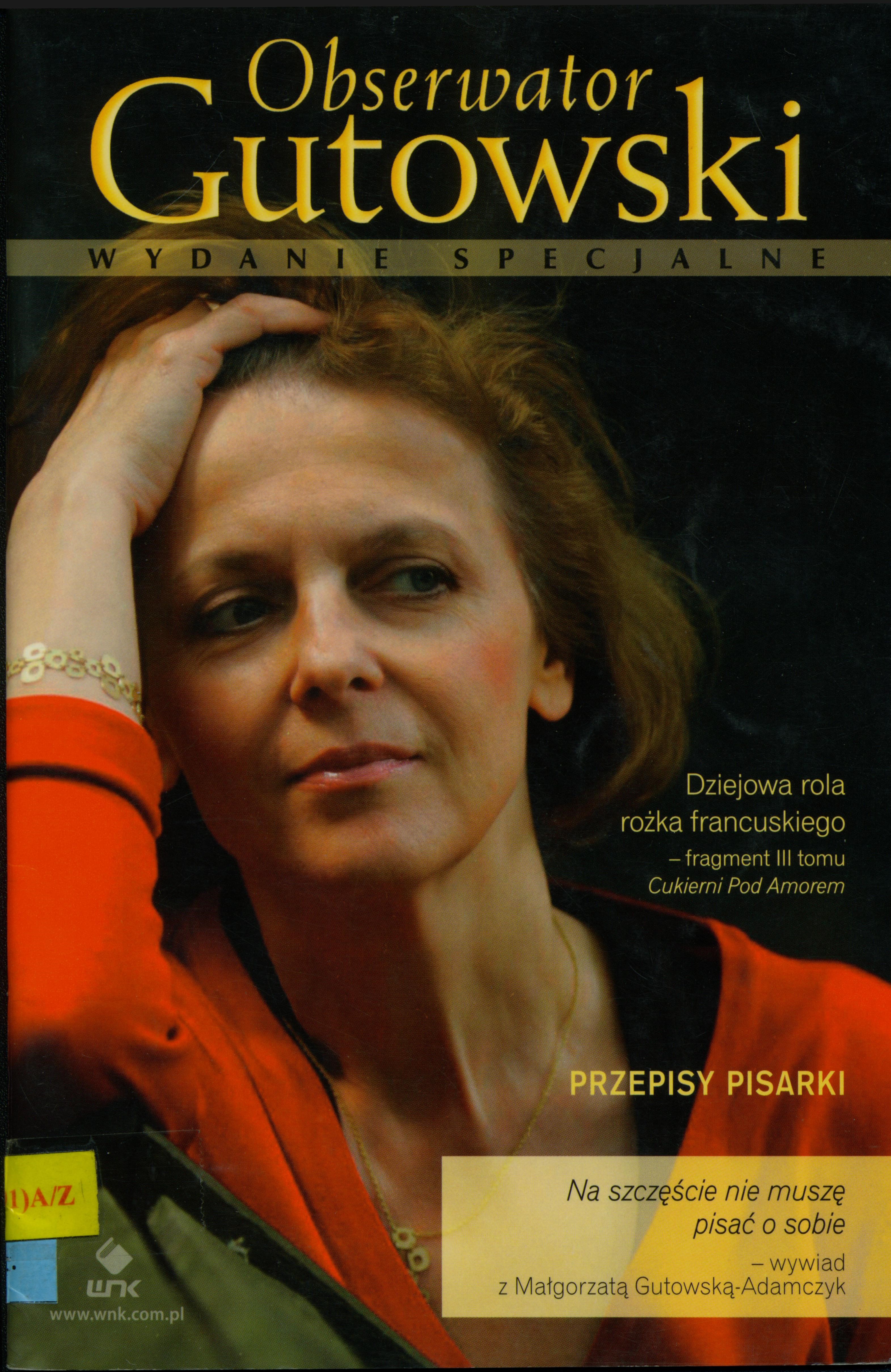 Streszczenie: Publikacja zawiera wywiad Doroty Koman z Małgorztą Gutowską-Adamczyk pt.: Na szczęście nie muszę pisać o sobie", a także wypowiedzi rodziny Autorki, przepisy na ulubione potrawy, wspomnienie o ciotce Halinie Kolasińskiej oraz fragment 3. t. "Cukierni pod Amorem".