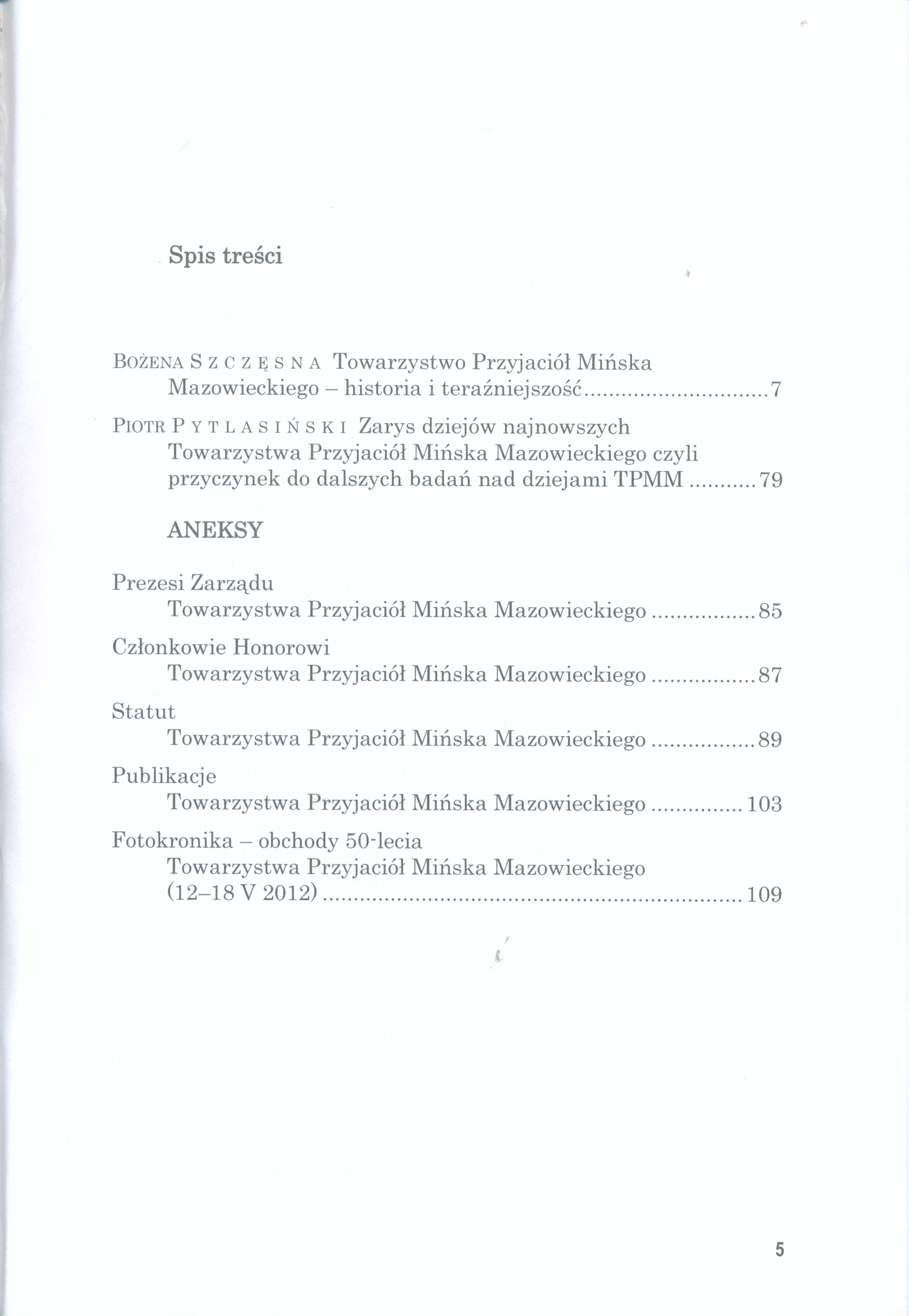 Zawiera: Towarzystwo Przyjaciół Mińska Mazowieckiego - historia i teraźniejszość / Bożena Szczęsna. Zarys dziejów najnowszych Towarzystwa Przyjaciół Mińska Mazowieckiego czyli przyczynek do dalszych badań nad dziejami TPMM /Piotr Pytlasiński.