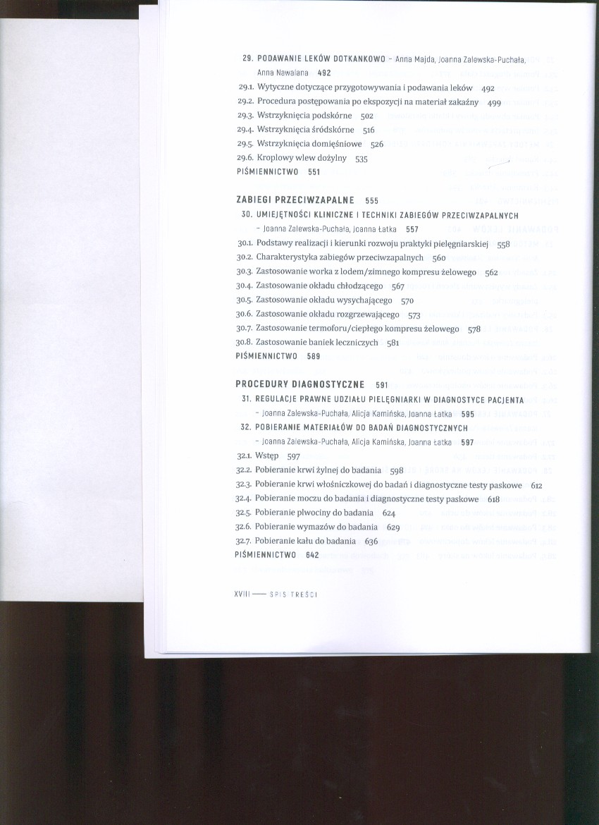 Publikacja Podstawy Pielęgniarstwa. Tom 2. Wybrane umiejętności i procedury zindywidualizowanej opieki pielęgniarskiej to nowoczesne ujęcie procesu kształtowania umiejętności zawodowych. Dzięki zdobytej wiedzy pielęgniarki będą mogły reagować profesjonalnie i odpowiedzialnie na codzienne problemy pacjentów. W poszczególnych częściach książki przedstawiono kolejno działania wynikające z bezpośrednich funkcji zawodowych. Każdy z bloków tematycznych zawiera podstawowe uwarunkowania realizacji tych działań i odniesienie do aktualnych regulacji prawnych w tym zakresie. Liczne ryciny, tabele i schematy ułatwią przyswojenie wiedzy, a zamieszczone po każdej części pytania, jej sprawdzenie. Autorzy poszczególnych rozdziałów wywodzą się ze środowisk akademickich większości uniwersytetów medycznych w Polsce, co pozwala na zapewnienie najwyższego poziomu merytorycznego opracowania. Treści zawarte w podręczniku nawiązują do książki „Podstawy pielęgniarstwa. Tom 1. Założenia koncepcyjno-empiryczne opieki pielęgniarskiej”, zwłaszcza do zawartych w nim założeń teoretycznych dotyczących pielęgnowania zindywidualizowanego, bazującego na pracy pielęgniarki z pacjentem z wykorzystaniem metody procesu pielęgnowania. [https://lubimyczytac.pl/ksiazka/4810793/podstawy-pielegniarstwa-tom-2-wybrane-umiejetnosci-i-procedury-opieki-pielegniarskiej]