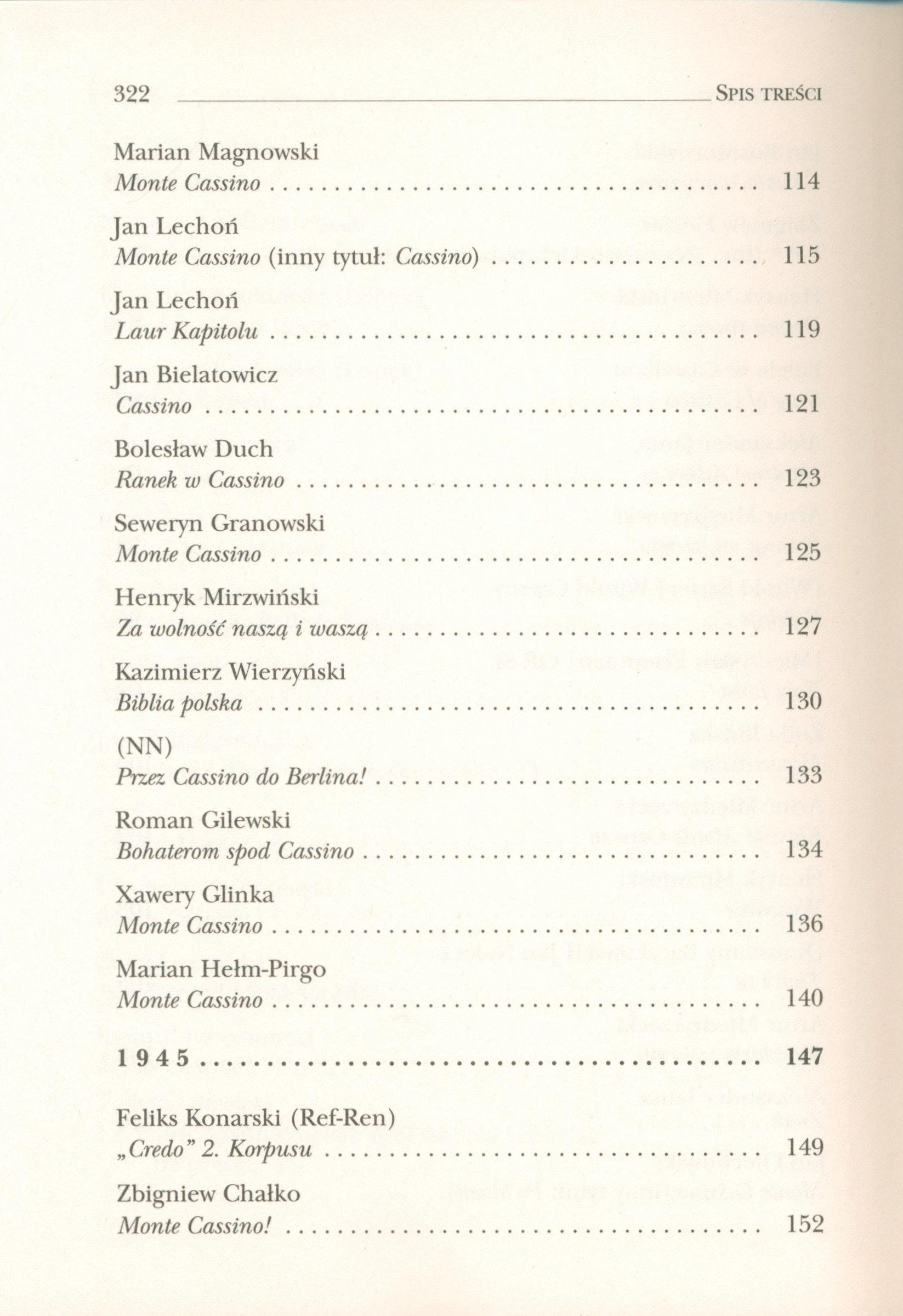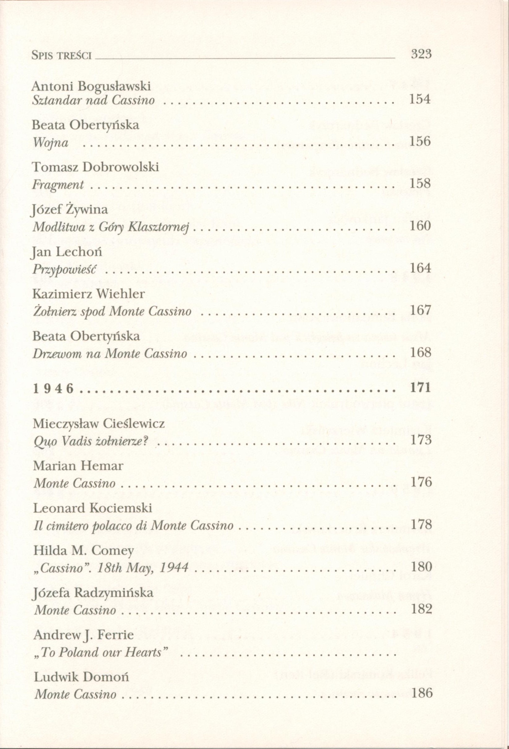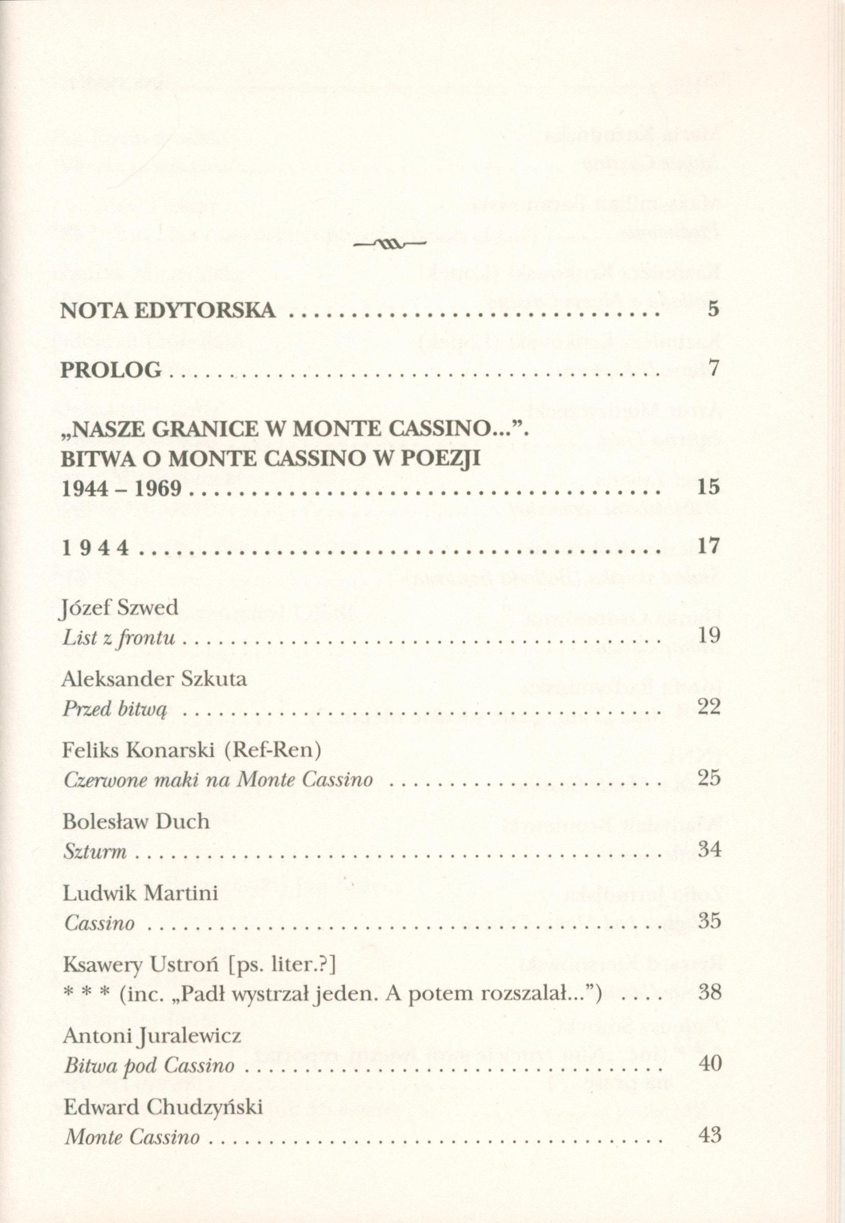 Antologia "Bitwa o Monte Cassino w poezji 1944-1969" obejmuje wybór utworów poetyckich wielu autorów poświęconych bitwie o Monte Cassino, powstałych w okresie od maja 1944 r. do maja 1969 r., tzn. do uroczyście obchodzonej 25 rocznicy bitwy. [www.znak.com.pl/ksiazka/bitwa-o-monte-cassino-w-poezji-1944-1969-kunert-andrzej-krzysztof-32495].
