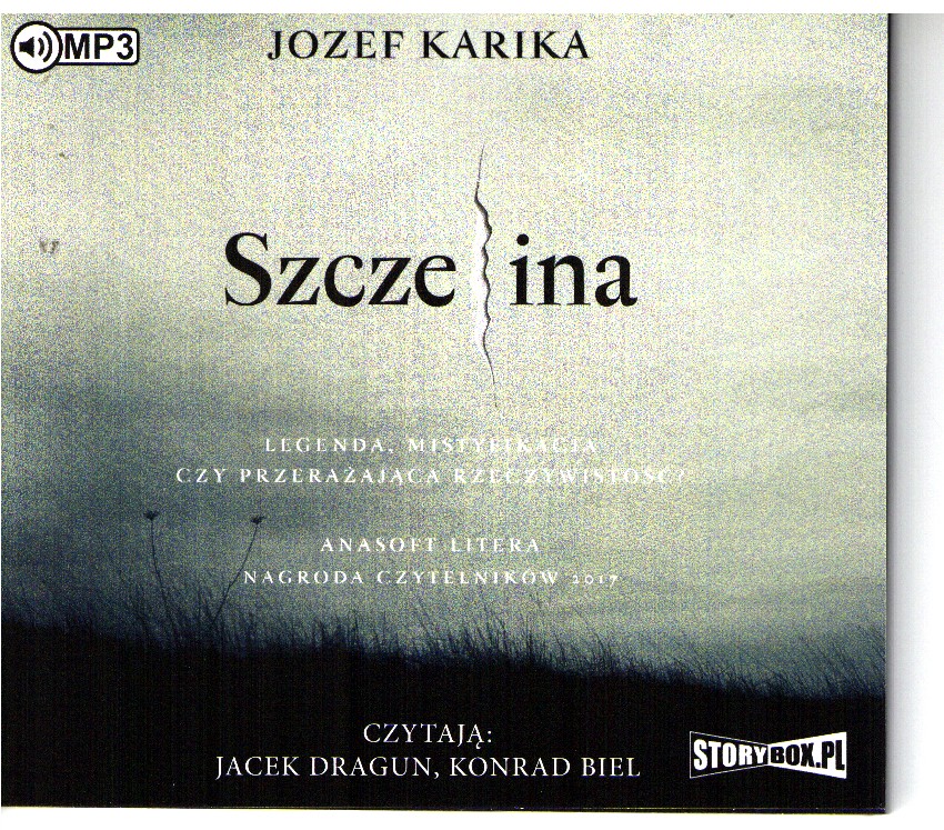 Szczelina / Jozef Karika ; przekład: Joanna Betlej. - Rudno : Wydawnictwo Stara Szkoła ; [Piaseczno] : Heraclon International. Storybox.pl, [2021]. - 1 płyta audio (CD) (12 godz. 30 min) : digital, stereo ; 13 cm.
