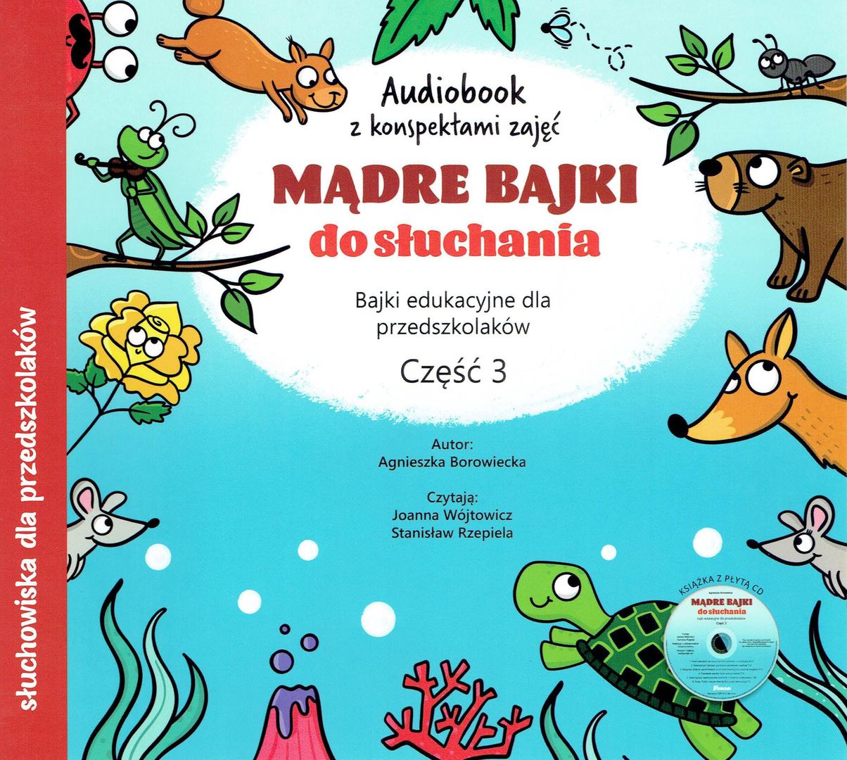 Mądre bajki do słuchania : bajki edukacyjne dla przedszkolaków. Cz. 3 / Agnieszka Borowiecka ; [konspekty zajęć Magdalena Ledwoń]. - Kraków : CEBP 24.12 Sp. z o.o., 2021. - 1 płyta audio (CD) : zapis cyfrowy, stereo ; 12 cm + 1 broszura (30 stron ; 19x21 cm).