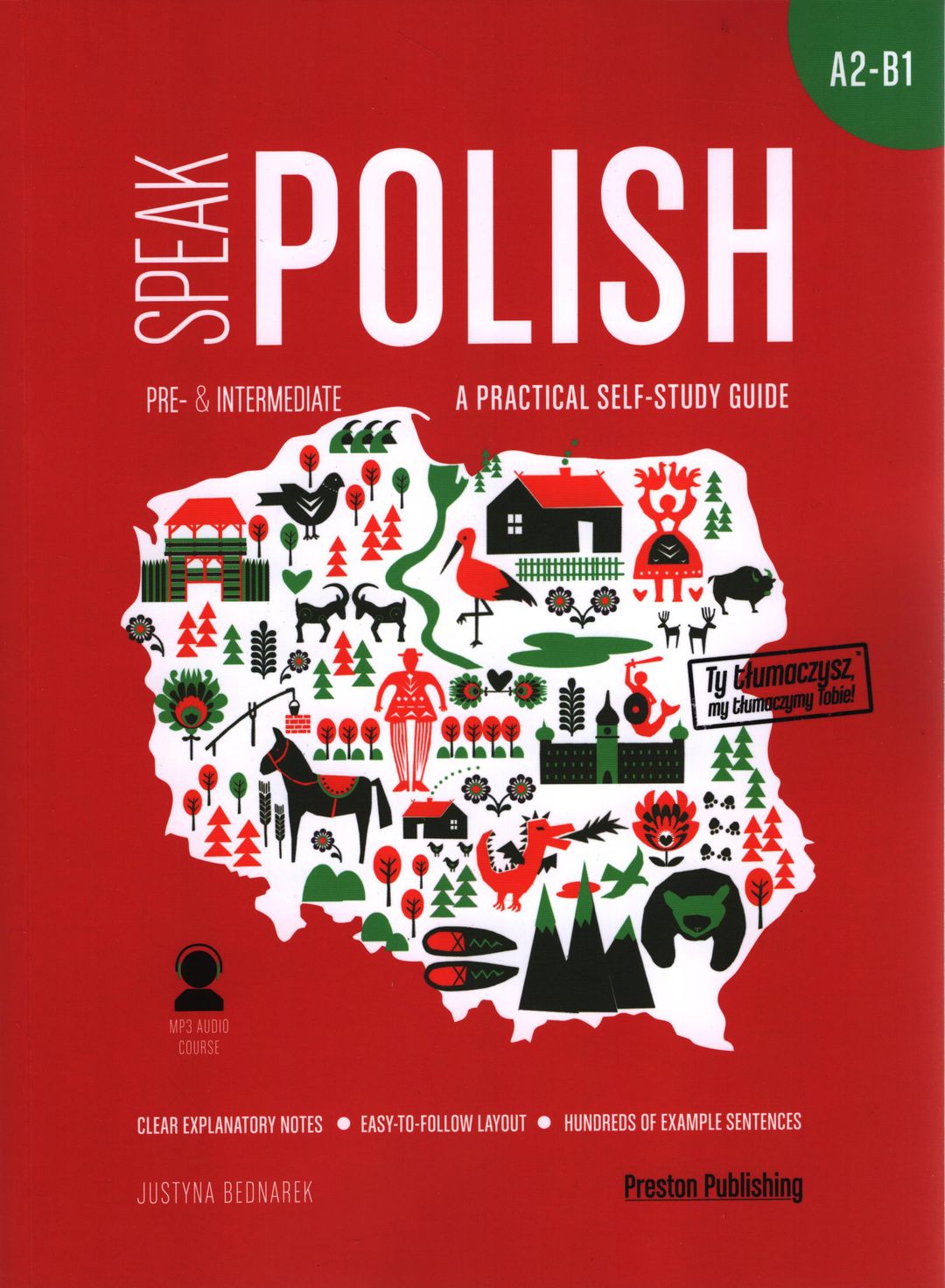 Gramatyka języka polskiego wydaje Ci się niemożliwa do opanowania, a brzmiące w szczebrzeskiej trzcinie chrząszcze nie dają Ci spać? ?Speak Polish. A practical self-study guide to propozycja dla Ciebie! W książce znajdziesz wiele przydatnych zdań w języku polskim, które będziesz mógł wykorzystać w codziennych sytuacjach, a także przystępne informacje na temat polskiej gramatyki przedstawione w języku angielskim. Dołączony do książki kurs audio ze zdaniami nagranymi przez natywnego lektora ułatwi Ci natomiast opanowanie największych zawiłości wymowy. Dzięki tej książce: ? nauczysz się podstaw polskiej gramatyki, korzystając z przystępnie podanych wskazówek, ? razem z polskim lektorem przećwiczysz wymowę i utrwalisz przyswojoną wiedzę, ? poznasz podstawowe zwroty w języku polskim, które ułatwią codzienną komunikację. To doskonała książka zarówno dla tych, którzy dopiero zaczynają swoją przygodę z językiem polskim, jak i dla nauczycieli języka polskiego jako obcego, którzy poszukują materiałów do pracy ze swoimi uczniami. [https://bookland.com.pl/speak-polish-a-practical-self-study-guide-a1-a2-mp3]